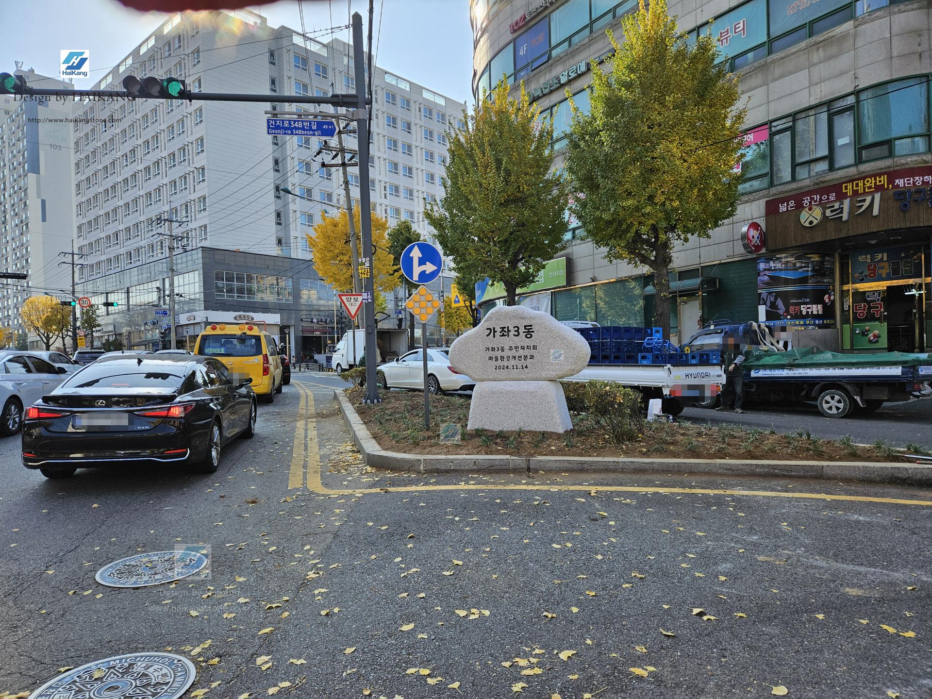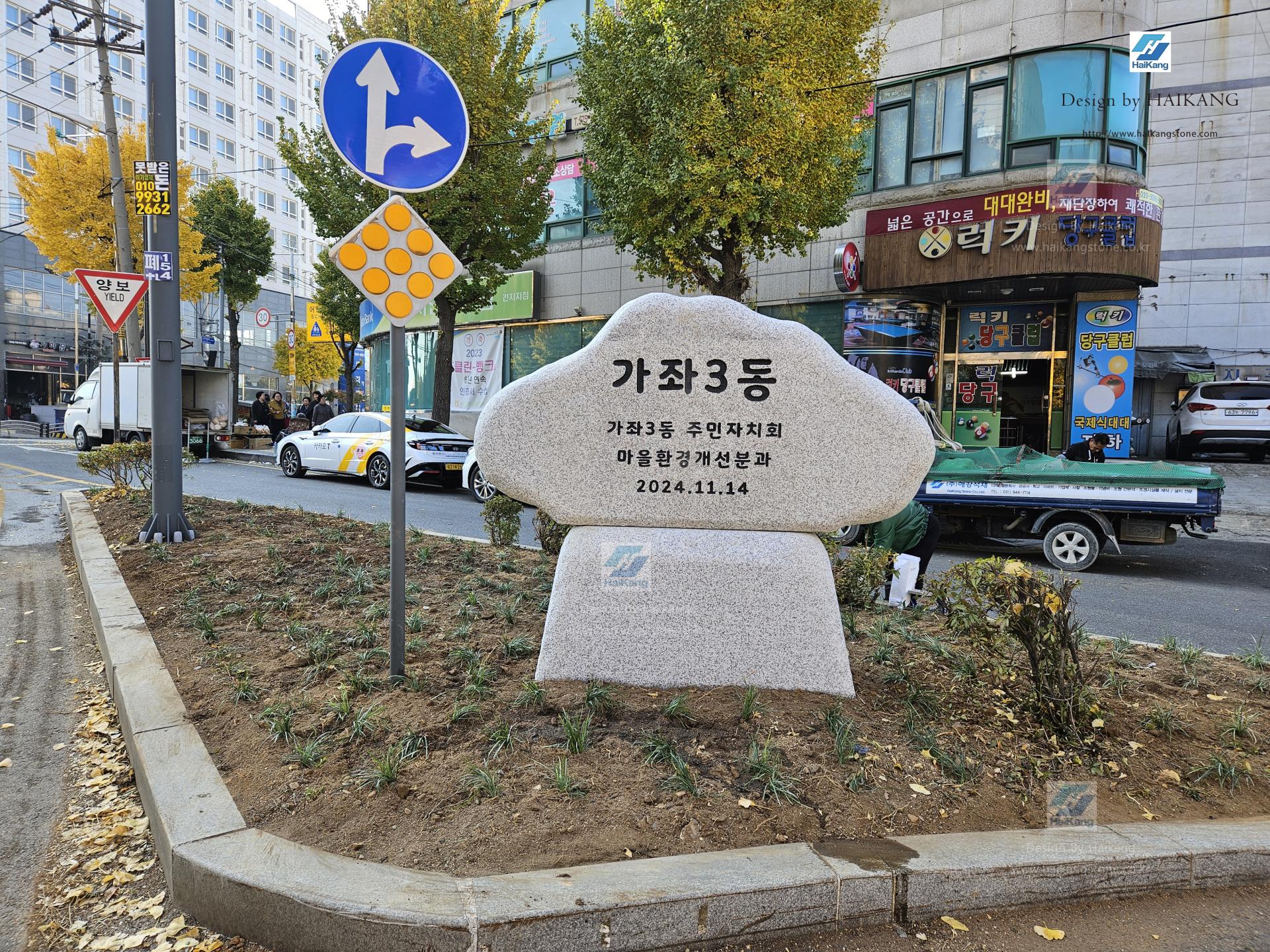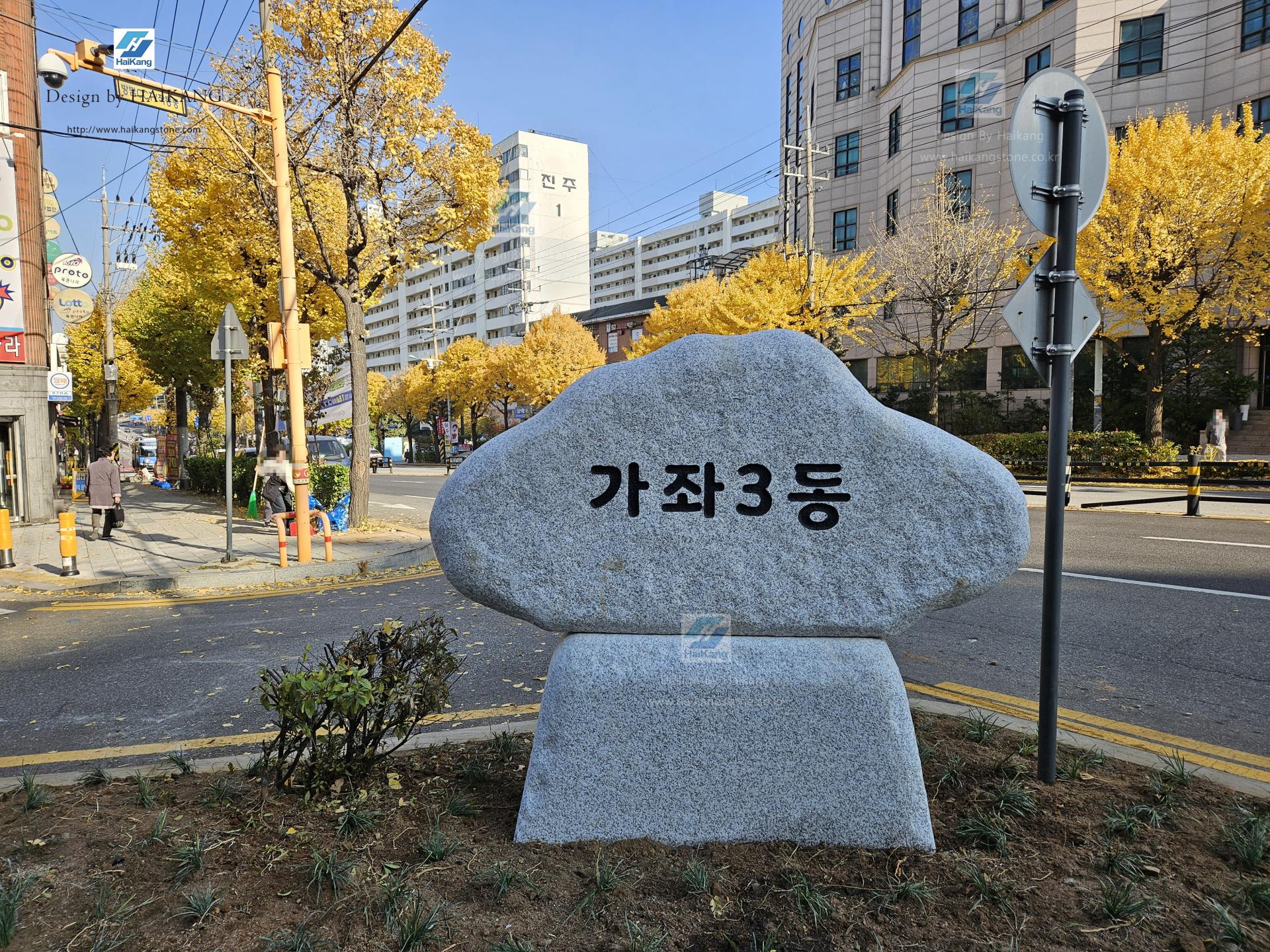 저희 (주) 해강에서 직접 제작 및 설치한 가좌 3동 표지석입니다.