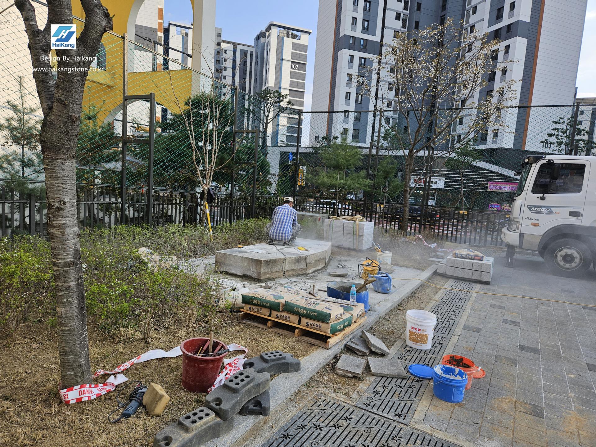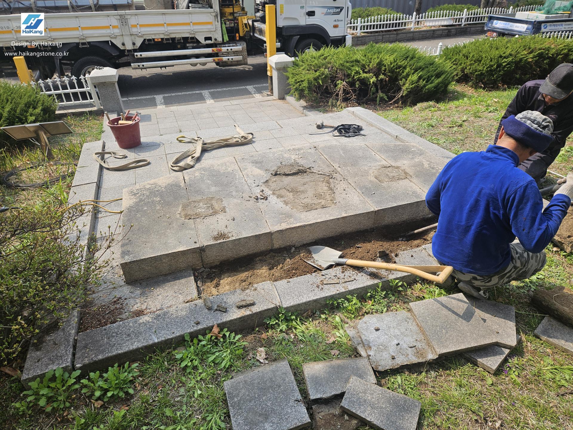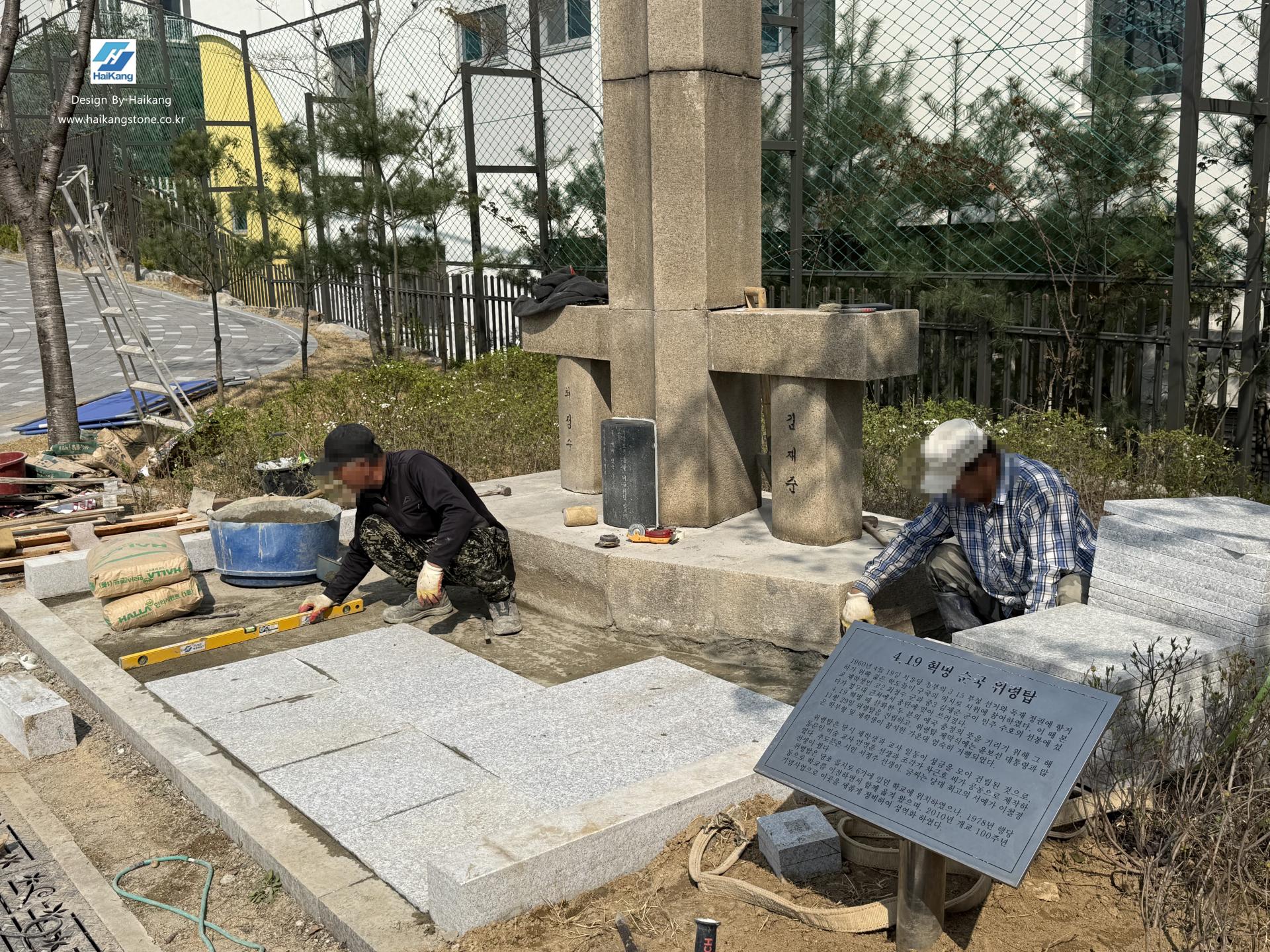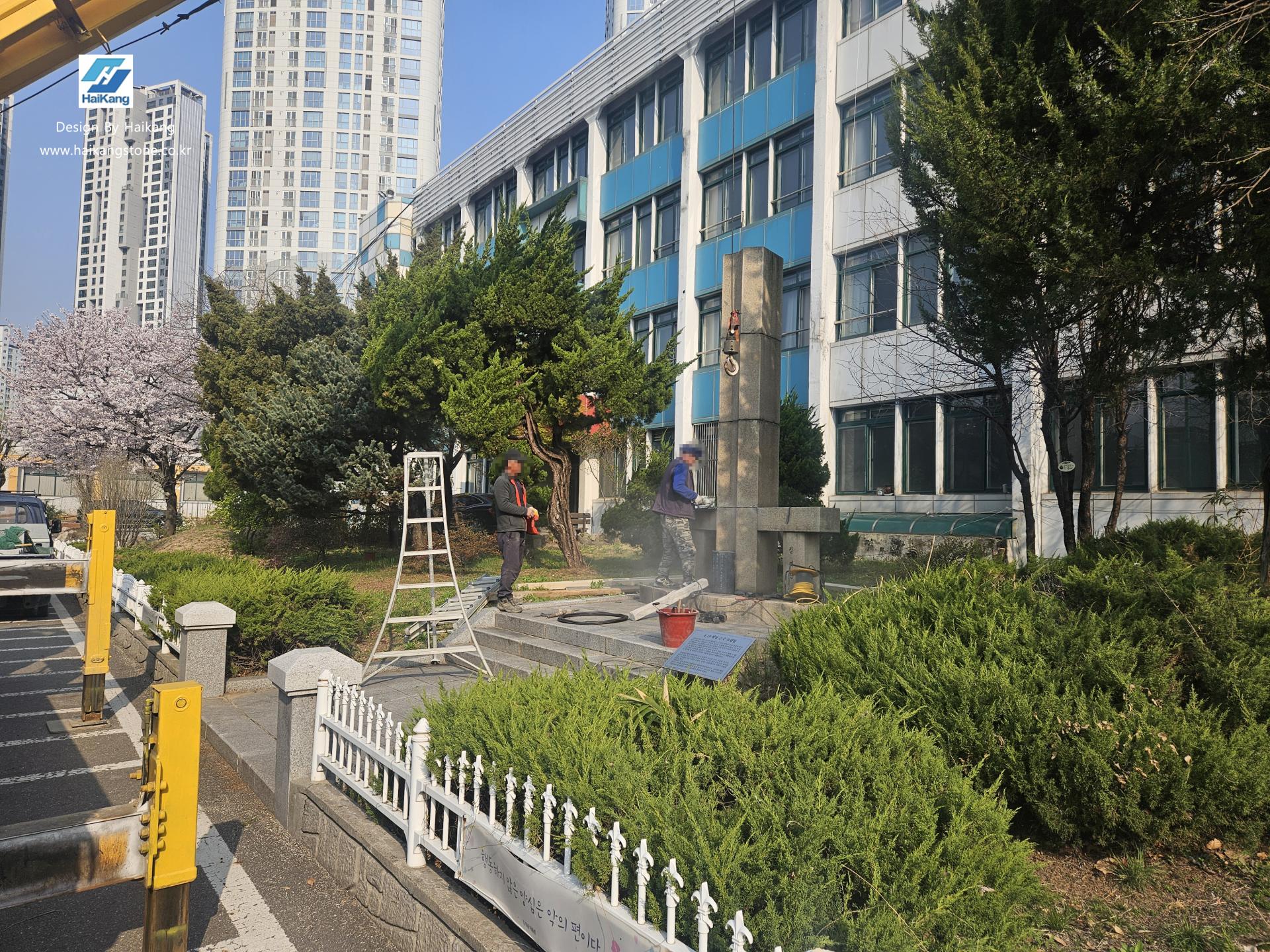 덕수 고등학교로 운반 후에 기존과 똑같이 기념비를 설치하고 바닥 판재 작업을 하였습니다.