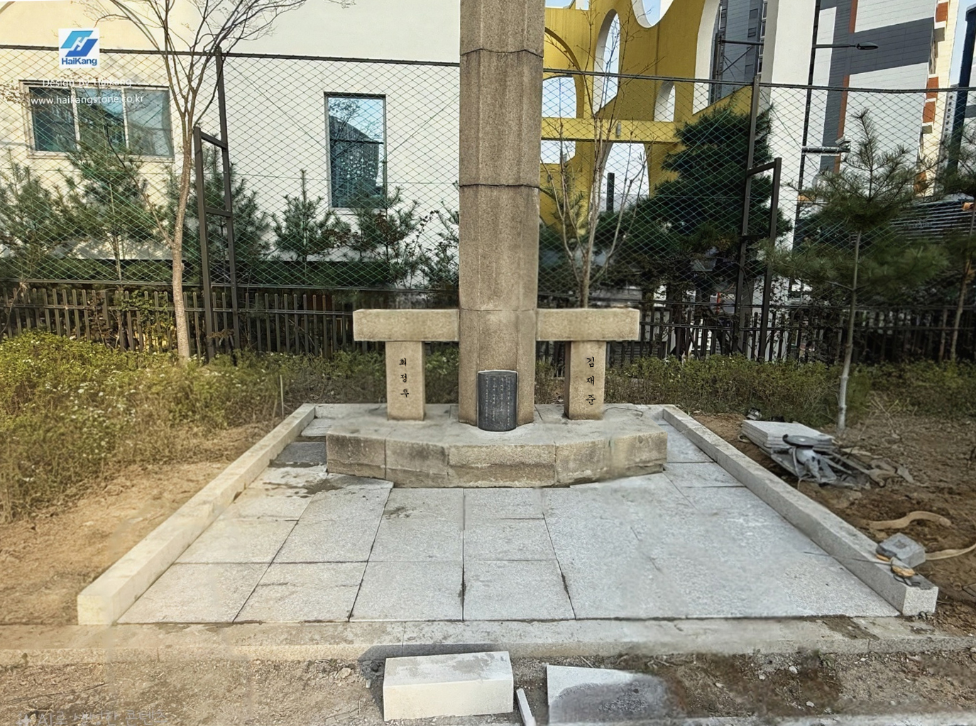 기념비가 유지될 수 있게 기념비 이전하기 전에 미리 기초 작업을 하고