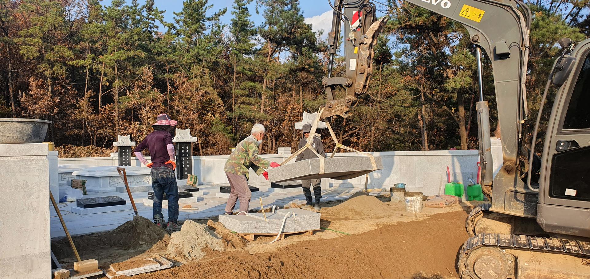 크레인을 이용하여 직접 설치하였습니다. 규모가 크고 오차가 있으면 안되는 가족묘인만큼